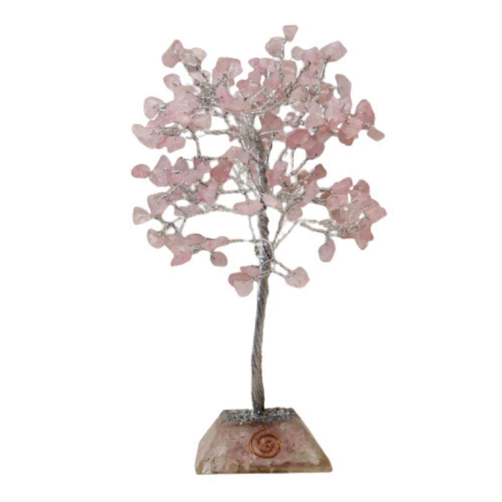 Arbre de pierres précieuses avec base en Orgonite - 160 pierres - Quartz rose