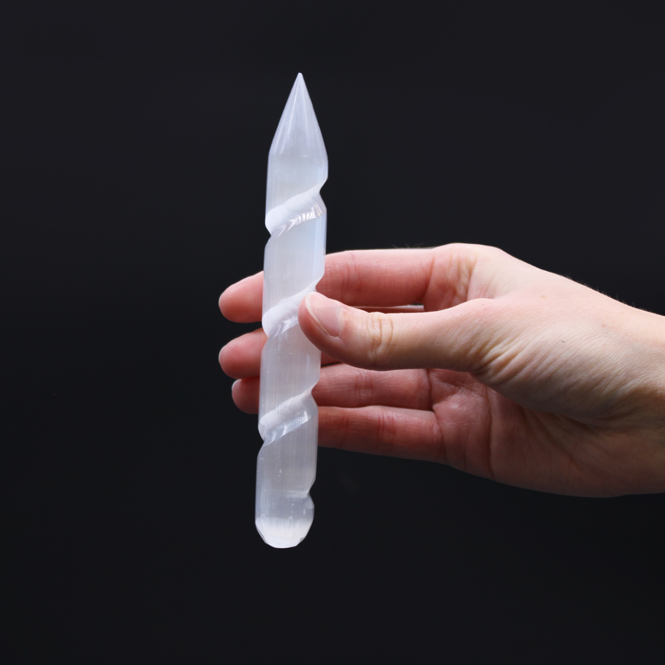 Bienfaits : Il est généralement admis que la sélénite est l’un des cristaux les plus puissants pour la guérison. Il est également relié au troisième œil, couronne et chakras éthériques. Certains disent qu’il favorise la pureté et l’honnêteté. On dit que cela force la personne qui le tient à être honnête avec elle-même.