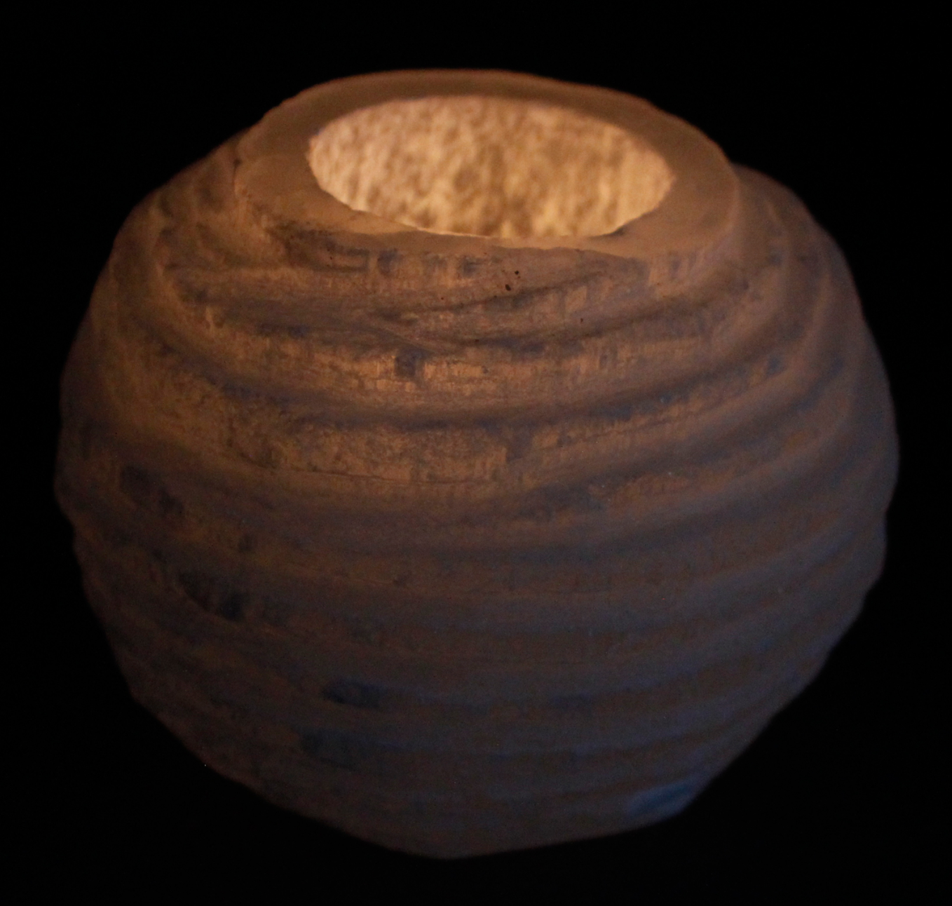 Ces Bougeoirs brillent parfois avec des zones plus blanchâtres que d'autres. Le Dessus de chaque bougeoir est poli et le dessous est coupé à plat.
