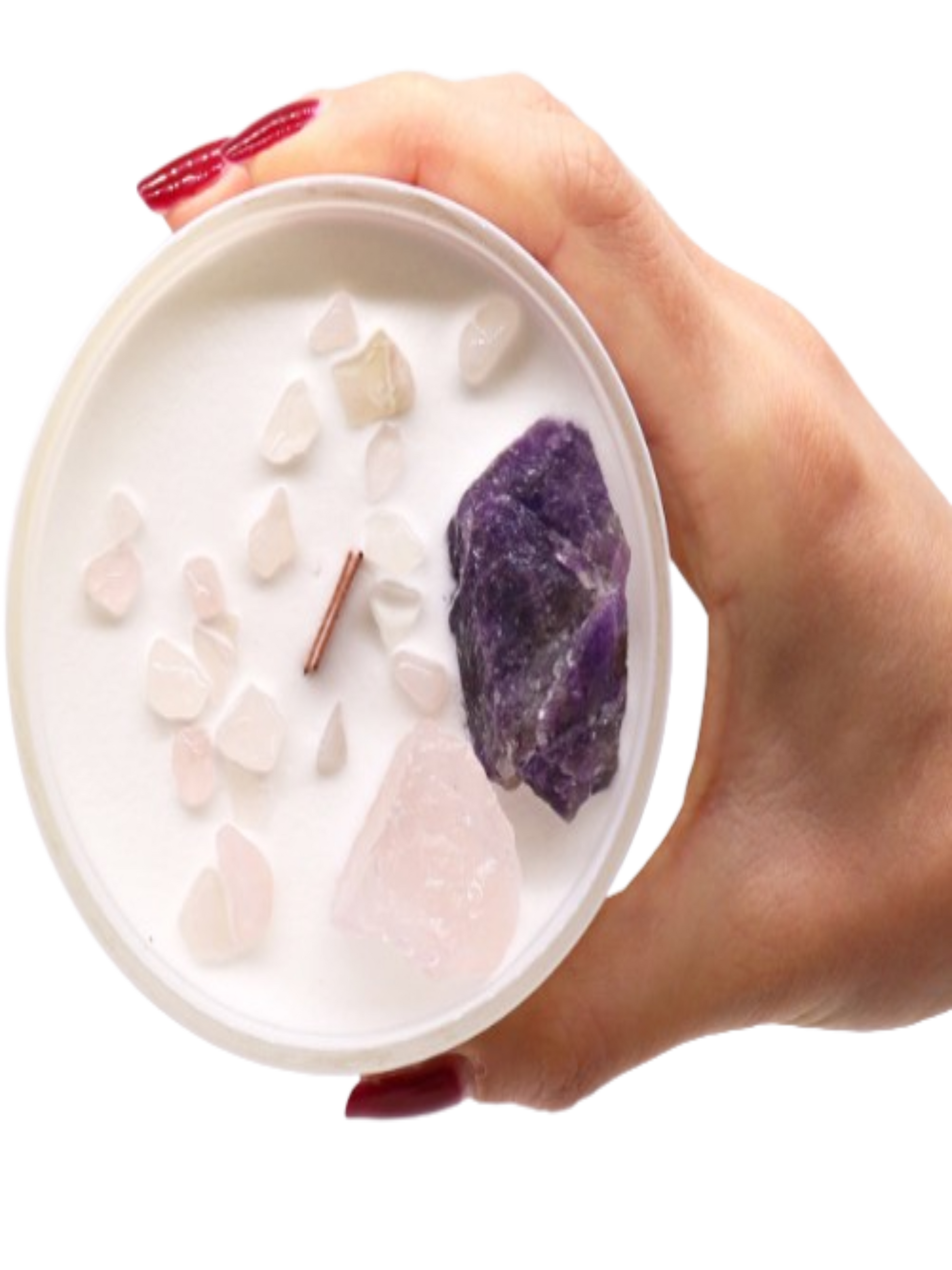 Après avoir brûlé cette bougie, le pot peut être réutilisé et vous pouvez nettoyer et conserver les cristaux de roche.